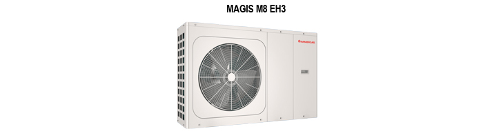 Čerpadla MAGIS M EH3 jsou vybavena moderní řídicí prostorovou jednotkou již z výroby. Vyspělá elektronická výbava umožňuje regulaci nejen okruhu TUV, ale i řízení přímých a směšovaných zón topného okruhu, dále umožňuje řízení až šesti tepelných čerpadel v kaskádě bez nadřazené regulace. Na vše stačí řídicí jednotka, která je dodávána v základní výbavě čerpadla! Samozřejmostí je režim chlazení v letních měsících. Celá modelová řada tepelných čerpadel MAGIS M EH3 je dispozici ve výkonovém provedení: MAGIS M8 EH3.