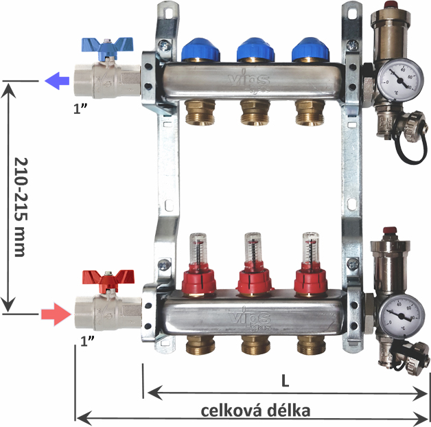 Rozdělovače řady INOX jsou vyrobeny z nerezové oceli. Samozřejmostí jsou kvalitní průtokoměry od firmy CamFlux 0 - 5 l/min s "paměťovým" kroužkem a regulační ventil na uzavíratelném ventilu pro každý okruh. Uzavíratelné ventily jsou připraveny k osazení elektrotermickými hlavicemi pro zónovou regulaci.